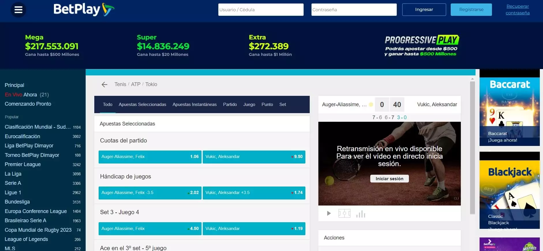 Con más de 200 mesas, incluyendo 34 dedicadas al blackjack en vivo, BetPlay brinda una experiencia de juego excepcional, similar a la de un casino físico en Bogotá, Medellín o Cali.
